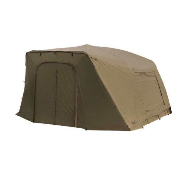De Avid EXO 2 Overwrap is ontworpen om de prestaties van je EXO 2 bivvy aanzienlijk te verbeteren door een extra beschermlaag toe te voegen die het binnenklimaat in alle seizoenen optimaliseert. Dankzij de dubbellaagse thermische constructie blijft warmte beter behouden tijdens koude sessies, terwijl de overdracht van hitte in de zomer juist wordt verminderd. Dit resulteert in een stabielere temperatuur binnen de bivvy en een veel lagere kans op condensvorming, waardoor je onderdak altijd comfortabel en droog blijft. De overwrap is vervaardigd uit stevig EX-materiaal met een waterkolom van 20.000 mm en uitgevoerd in een kaki bruine tint die perfect aansluit bij de EXO 2 bivvy. Het ontwerp is voorzien van vier ventilatieopeningen met ritssluiting, zodat je de luchtcirculatie van de bivvy volledig kunt benutten, zelfs wanneer de overwrap is bevestigd. Voor extra flexibiliteit zijn de zijpanelen oprolbaar, waardoor je de voorkant van de shelter geheel open kunt configureren wanneer de omstandigheden dat toelaten. Daarnaast is de overwrap uitgerust met handige details zoals rod retention straps, een geïntegreerde regengoot, elastische pegging loops en een royale letterbox-deur die zowel centraal als zijdelings geopend kan worden. Met een uitbreiding van vijftig centimeter aan de voorzijde biedt de overwrap aanzienlijk meer leefruimte, terwijl hij ingepakt toch compact blijft met een formaat van 77 bij 23 bij 23 centimeter en een gewicht van 6,2 kilo. De Overwrap wordt geleverd inclusief draagtas en heavy-duty haringen en is exclusief ontworpen voor EXO 2 shelters, zodat een perfecte pasvorm en optimale werking altijd gegarandeerd zijn.