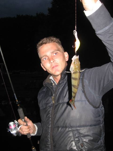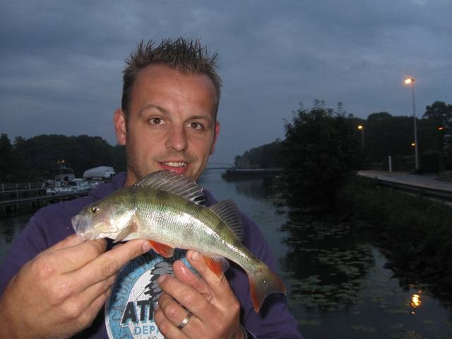 Vanavond even op pad geweest met Ralf om een nieuw stuk kanaal te proberen in Lommel.Het stuk naar Neerpelt werd vanavond bestormd met hornets en de dropshot shads.Met een enkele volger was het zeer taai vandaag en zeker met de regen erbij was er weinig aan.Toen dus maar weer de auto in en verder naar een sluis.Eenmaal aangekomen bleef het taai met de visjes vangen.Maar na een aantal worpen weet Ralf er een mooie dikke baars te haken van 30+. Maar zoals in de titel beschreven valt de dikzak eraf.Balen!!!Doorvissen maar weer want hier zitten ze wel,het is ideaal vissen alleen de hoge kade is niet makkelijk.Ik ga zelf een stukje verder dropshotten bij een kolk en weet mijn montage onder een aanlegsteiger te mikken.Draaien,draaien en Boem! tikken op de top en de slip rammelt weer YES.Na een korte dril, weet ik de baars te pakken en gauw een foto knippen en hup weer verder.Ralf gooit in de sluis langs de kade af en na een 2 meter draaien is het zijn hengel die rondklapt.Weer een mega vette baars is over de hornet geschoven.Ik pak het schepnet maar de steel is te kort,waarop Ralf de vis wat omhoog wil halen maar dan....Pats weer eraf!@#%$%^##@ verdomme dat was een hele mooie voor op de site zeggen we tegen elkaar.