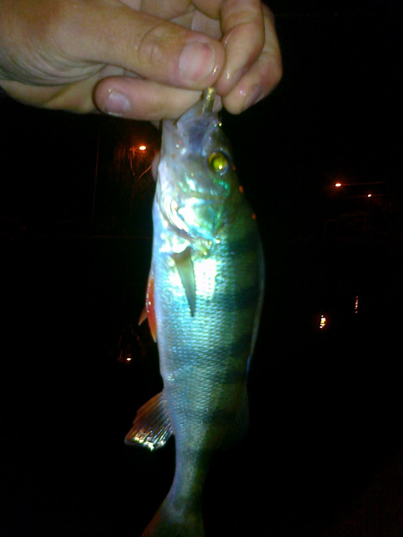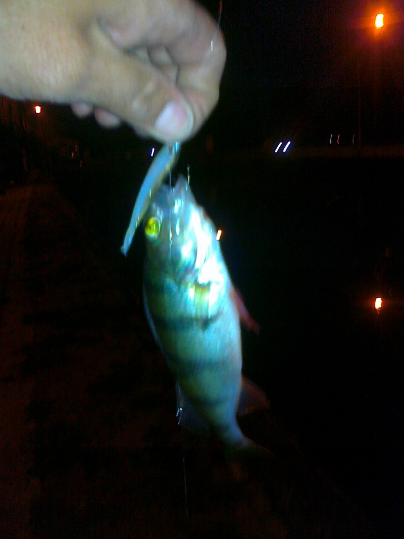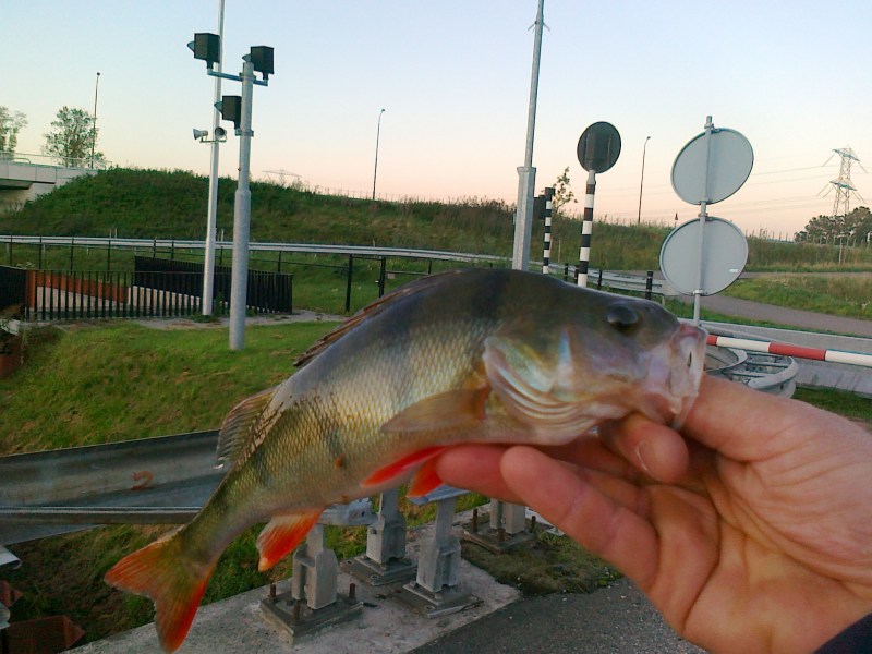 Maandagavond ben ik de sluizen op weesten zoeken inHelmond.Na een eerdere trip vorige week,dacht ik dat er meer te halen was.(Toen een aantal baarzen en een snoekbaars.)De eerste stek was de insteekhaven bij de autoboulevard.Tom was ook nog gekomen en dacht ook zeker wel een baars te kunnen vangen maar na 2 volgers en vele worpen ,nog niks op de kant.Ik besluit een sluis verder te gaan en daar krijg ik meteen actie op de top.Ook wordt de baars door een 4 á 5 soortgenoten achtervolgd boven op het water.Yes! Hier kwam ik voor,hier zit vis.Wil ik een mooie foto maken,heb ik mijn kaartje van de camera nog in de laptop zitten,dan maar met mijn telefoon.Ik vang een 5 baarzen in 15 minuten maar dan komt er een groot vrachtschip en gaat precies op mijn stek liggen in de sluis!! Ik heb geprobeerd hem aan de kant te duwen maar dat ging net niet hahahaha.Verkassen dan maar,volgende sluis in.Jan heeft ondertussen gebeld dat ie onderweg is en ik begin alvast wat te dropshotten.Weer vrij vlug worden er 3 baarsjes op de kant getrokken met de spro shadjes.Eenmaal aangekomen op de stek begint jan ook te shotten wat ook hem vis oplevert.We vangen samen nog een 8 baarzen in het donker.Maar de snoekbaarzen zijn verdwenen,en ook grote baars heb ik hier nog niet kunnen haken.Hopelijk morgen meer succes met de boot op het kanaal bij de zuiderburen...Sorry voor de slechte foto's,camera zit alweer in mijn tas MÉT kaartje.Tot Morgen!!Mvg Rob en Jan
