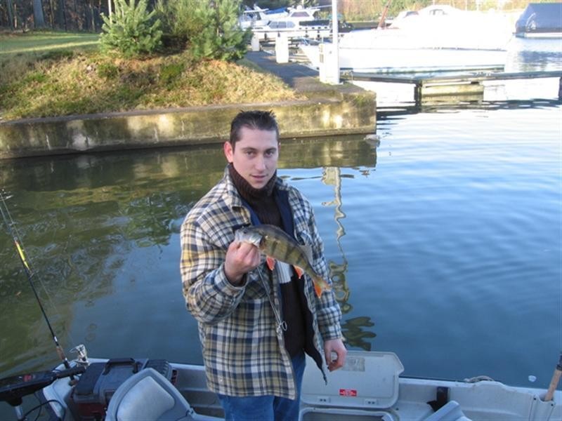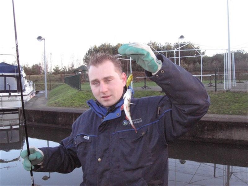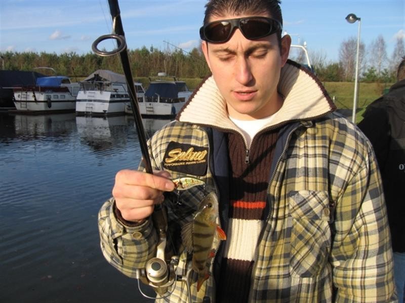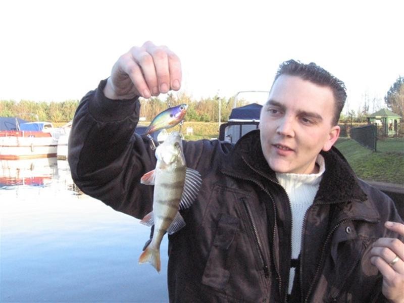 Vandaag zijn we weer op uitnodiging van rob en ralf gaan vissen in de grensstreek. Rob en ralf hadden maat jan meegenomen en ik (eric) was samen met rudy. We waren dus met 5 man sterk. Om 8.00u afgesproken op de waterlaat in bergeijk waar ralf al meteen een snoekje wist te landen.Verder bleven de aanbeten uit dus besloten we naar lommel te gaan.Rob en ik trolde door de haven wat rob een dikke baars van 40cm opleverde en ik ving er 1 van ongv 30cm.De andere viste werpend vanaf de kant maar dat was ook niet echt dik vangen. Vervolgens hebben rudy en ik een stuk van het kanaal afgetrold maar ook daar geen resultaat.In de haven bleef het ook bij een enkel baarsje dus op naar de volgende stek.Dat was de 24uurs shop in lommel. Een fantastisch concept van onze zuiderburen vinden rudy en ik! Alle soorten eten en drinken kun je daar 24uur per dag uit de automaten trekken,broodjes en snoep maar ook friet en tosties....zelfs hamburgers en broodjes frikadel !!!Echt geweldig, zeker als het vissen even tegen zit. In de 24uurs shop werd de nieuwe stek bepaald. dat was het gat van waalre. Maar dit was ook weer een flop godverd......! Toch gaven we de moet niet op en gingen terug naar bergeijk, weer niks.Toen toch nog ff naar lommel het haventje de laatste kans om nog iets te vangen.Rob ralf en jan kregen daar bezoek van vrouw en kinderen dus nu moest het goed komen.En dat kwam het min of meer ook rob en ralf wisten nog een paar baarzen te haken ik had er 6 maar jan kwam vandaag niet van de nul af. Jammer jonge volgende keer beter!