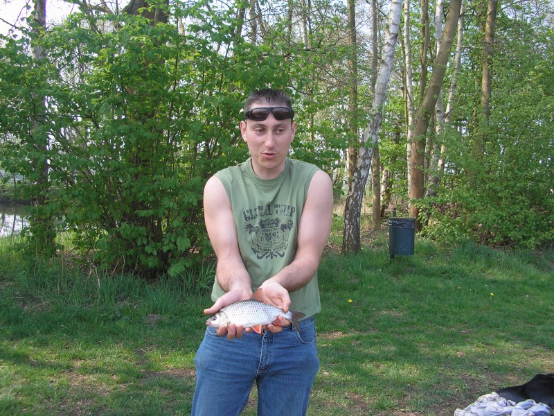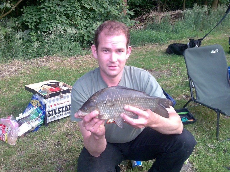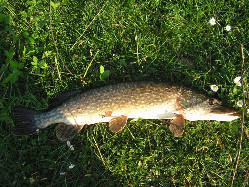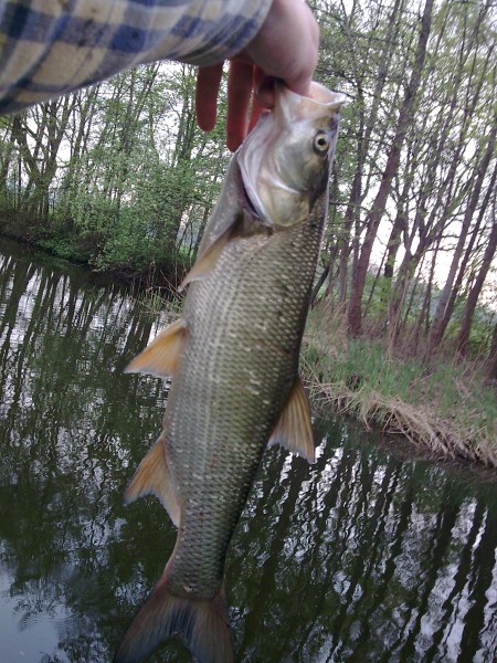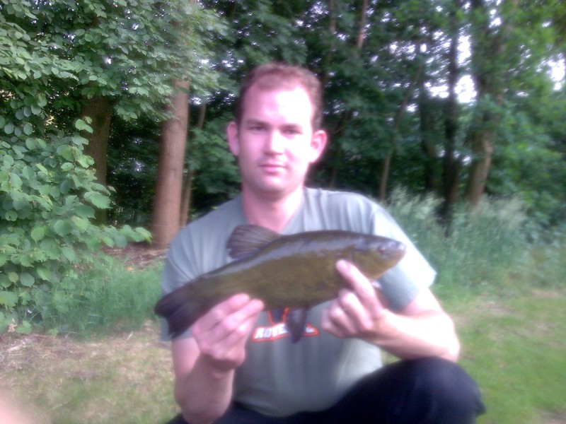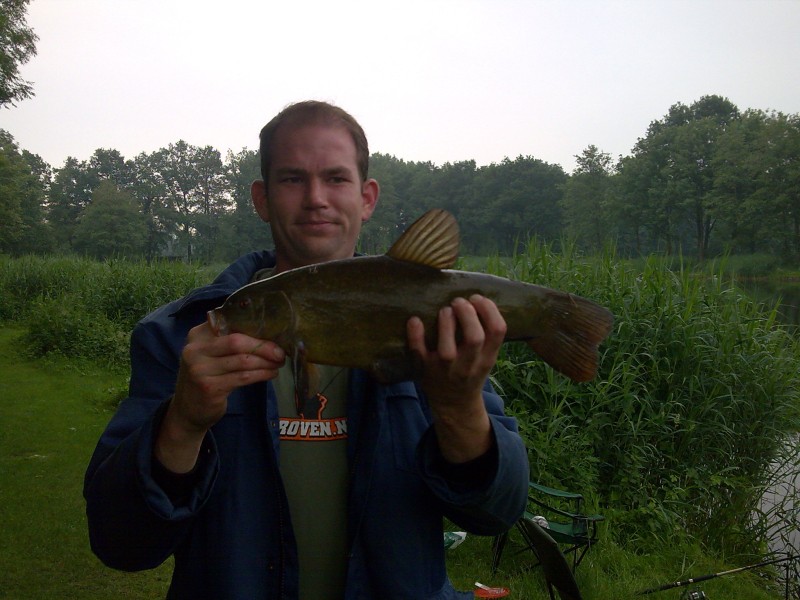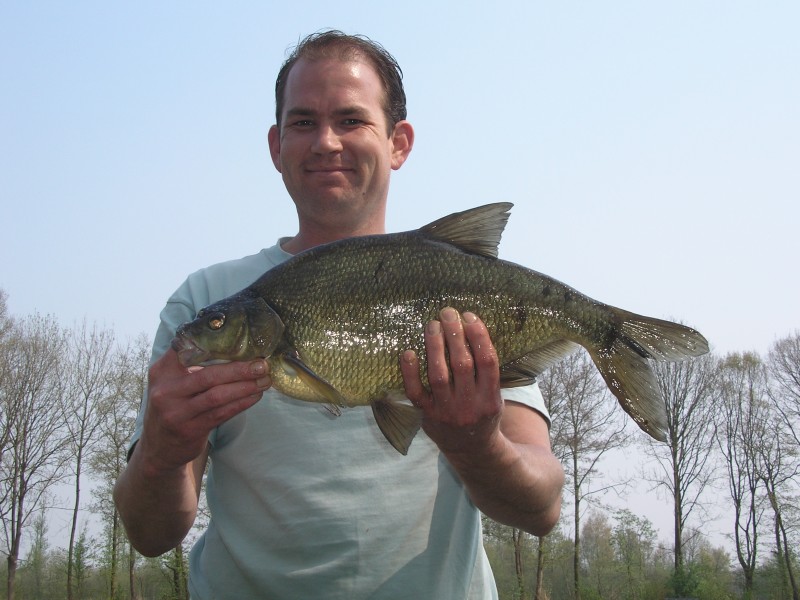 Als echte Roofvisser heb ik natuurlijk altijd wel ergens een spinnertje ofzo bij in een viskoffer.....want je weet maar nooit!!??!! Op het moment dat de vangst wat afnam zeg maar gerust dat we niets meer vingen hadden we het vermoeden dat er een (uitgezette) Roofblei onze stek verstoorde. Dus toch m'n spinnertje illegaal tewater gelaten en na een paar keer werpen tikte in er een Roofblei uit. Na nog een paar worpen konden we ook nog een mooie snoek landen. Na deze rovers op een ander deel van de vijver teruggezet te hebben zat de beet er weer snel in op de stek.