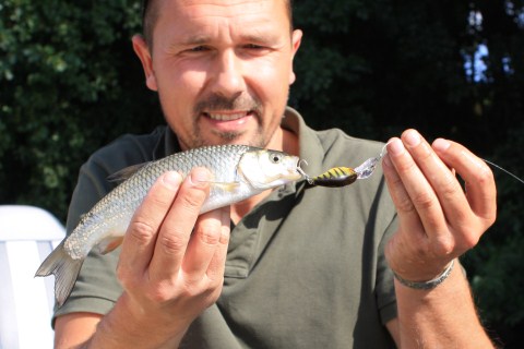 Gisteren ben ik even aan de slag gegaan met Chubby en Chibi. Twee vriendjes die het goed met elkaar kunnen vinden. Ze lijken wat op elkaar al is petit Chubby (Illex) net iets vinniger dan zijn soortgenoot Chibi (Spro). Al trollend achter de boot vingen ze de ene baars na de andere. Enkele baarzen van rond de twintig centimeter verdwenen in een grote emmer om later geserveerd te worden aan de Maasmeervallen. De kleine Illex van 38 mm ving niet alleen baarzen maar ook enkele kopvoorns en een zelfs een roofblei in een mum van tijd. Echte toppertjes die zeker een vaste plaats verdienen in de viskist. De meervallen waren echter minder overtuigend gisteren. Ze hielden de kaken stijf dicht op elkaar en bleven liever lui dan moe. Ik had eigenlijk ook niet anders verwacht bij een watertemperatuur van 24 graden. Maar toch weer leuk gevist.