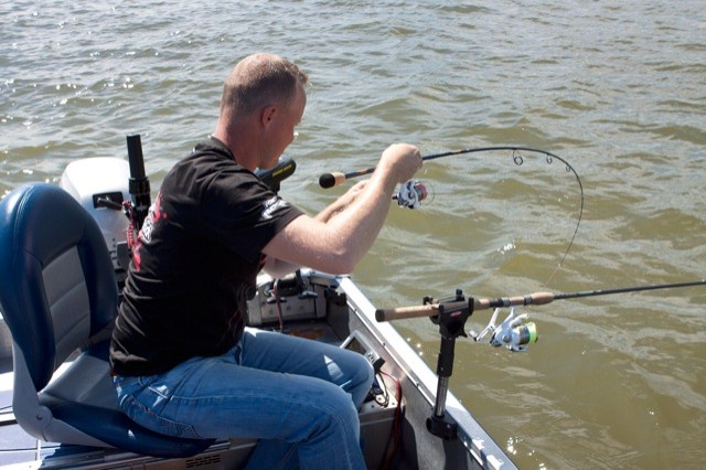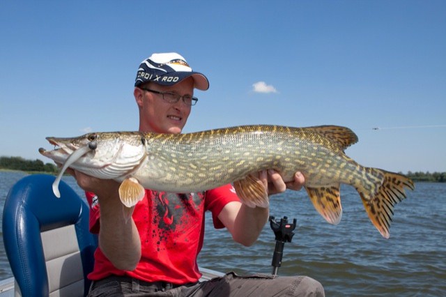 In de morgen wisten we een 20 tal vissen te vangen. maar de middag was het echt zoeken geblazen. Ze zaten er wel naar mijn mening maar pakken ho maar.Toch wisten we de op het einde van de dag 31 vissen te vangen. Waarvan 3 snoeken,,2 van 80+ 1 mooie winde van dik in de 50 (jammer dat ik deze loste)m 1 baars en de rest mooie snoekbaarzen. Waarvan 1 van 72 cm in de steun. Deze keer was Bjorn de gelukkige.In de namiddag wist Bjorn me behoorlijk in te halen met een nieuwe shad van HT (Henk Thielens) de super swimmer (10 cm), in de kleur van transparant wit en een lichte zwarte rug.Zelf vis ik de laatste tijd met Fox Rage. Met onder andere de slugger shad 13 en 10 cm, en natuurlijk de wiper 12 cm. Een shad die je moet leren vissen. Jammer genoeg was deze, zeer warme zomer dag snel voorbij, en moetsen we terug naar huis keren. m.v.g Freek en Bjorn Janssen