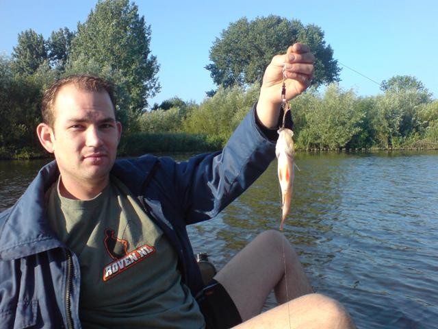 We leggen de boot in het water en laten de JOKION even lekker warm pruttelen.Alles verder installeren en trollen maar.Ik begin met een ASP spinner van Spro.Wat na een 100 meter al resulteert in een mooie baars.we gooien nog wat af om een roofblei te haken maar tevergeefs.