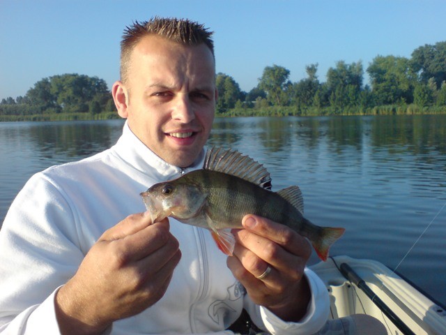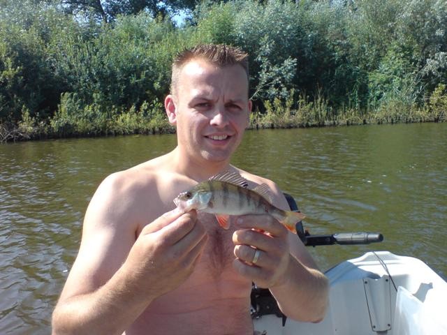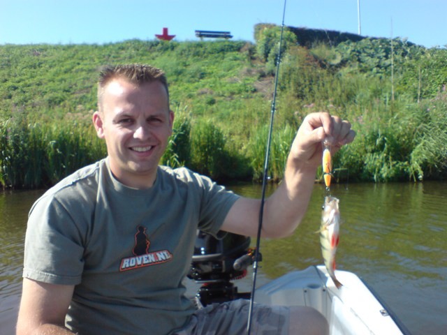Maar we hadden vandaag nog meer te doen,we moesten nog een band vinden voor de trailer.Dus ik met mijn verhaal naar de haven meester en die heeft me via de gouden gids naar De bandenboer in Meerkerk gestuurd.Die heeft 's morgens de band besteld en om 14.00 uur gemonteerd.Na het bestellen van de band hebben we eerst nog wat getrold maar het werd allemaal minder en we vingen nog wat baarsen maar verder niet veel,raar is wel dat alles vandaag op zilver en blauw bijt.Mijn jointed-shadrap en de zilveren-mepps zijn favoriet maar ook Patje zijn Salmo "sting" wordt reglematig gegrepen maar ook weer gelost.Het blauwe ASP spinnertje levert me 2 baarsen op.