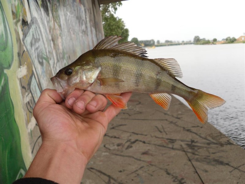 Niet erg groot maar hij telt! Terug gezet en meteen weer over die zelfde plek heen gegooid te hebben krijg ik weer een tik en sla meteen raak, yes… hopend op een mooie baars en die