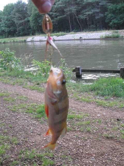 Na een "mislukte"dropshot sessie gister,zei ik vanavond tegen mijn vrouw:Ik ga efkes een uurtje.....Op de vraag of ik met het vissen getrouwd was durfde ik geen eerlijk antwoord te geven.Dus na wat gesteggel naar de waterkant.Lommel was de stek voor vandaag,het Bocholt Herentals kanaal.Een mooi kanaal met mooie begroeide kanten,en een stenen bodem,wat palen en andere obstakels dus een must voor de roofvisser.Nadat mijn zoontje mijn hengel had ingepikt heb ik laatst bij Bas een Spro dropshot allround gehaald van 2.40.Een super keus bleek wel vandaag...Dus aangekomen in de haven even de brug over en smijten maar,eerst met de Mepps aglia streamer nr 3 goud.Wat na 3 worpen al een baars opleverde,na de 2e en 3e baars op de mepps toch maar dat kleine shadje van Bas eraan.Ik ben zowat verslaafd geworden aan dat dropshotten.Lichte hengel kleine molen en heel gevoelig vissen,ik vindt het prachtig!!En over de aanbeten maar nog niet gesproken.