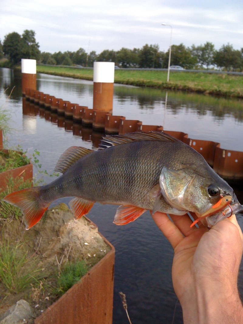 Na de eertse werkweek van de vakantie kon ik zondag ochtend weer eens gaan vissen. Patrick en Bas waren druk vandaag dus met de boot erop uit was geen optie voor mij. Ik besloot te gaan dropshotten bij één van de vele sluizen op de zuid-willemsvaart.Na een halfuur had ik beet, een mooie baars van ongv 30cm. Op die plek ving ik er 5 allemaal dikke rond de 30cm. Het bleef verder rustig meet de aanbeten. Het was al weer middag geworden en ik besloot weer huiswaards te keren.Toch weer ff mooie sport gehad met m'n lichte drop-shot hegel.Eric van Nuland,Team Roven.nl