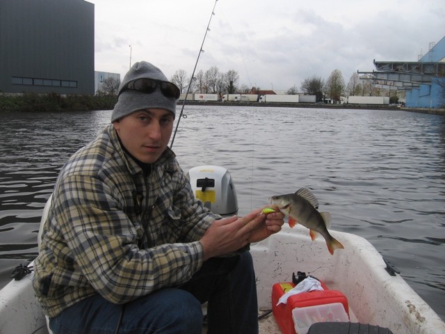 Foto´s worden gemaakt en er wordt effe vergadert met zijn vieren.Het plan wordt gewijzigd voor vandaag,we gaan naar Veghel.We varen terug en pakken alles weer in.Om goed 13.00 uur staan we aan de kade van het kanaal in Veghel.Maar we zijn niet de enige boot op het water,het water ligt vol met 4 grote boten vol met zwarte pieten en SINTERKLAAS!!!!We vonden het al zo gek dat er een paar honderd man ons op stond te wachten langs de kade om ons te zien vissen.Er wordt wat gezwaaid en het trollen kan weer beginnen.Dit gaat beter,Eric vangt 3 baarsen en een snoek en ik weet nog een baars te vangen en een mooie volger te krijgen net langs de boot.Tommy en Nicky weten niets meer te haken.Ach ja als het maar gezellig is,op de terugweg pakken we de ]MacDonalds nog effe mee en met een volle maag gaan we terug naar huis.