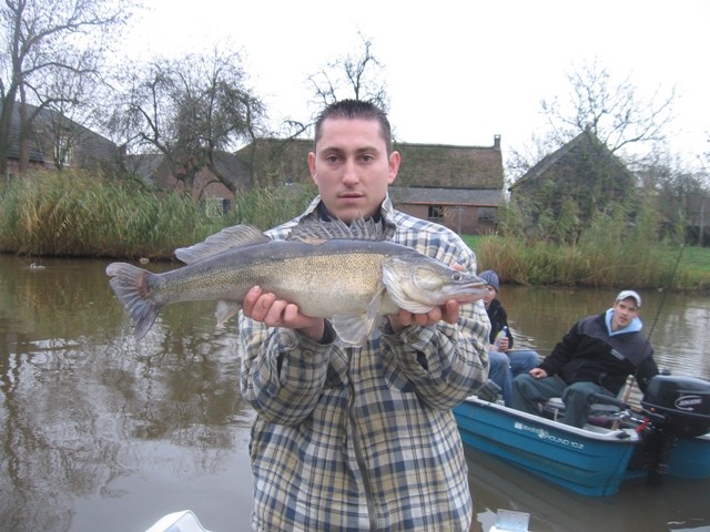 Na vanalles geprobeerd te hebben, en al een 2,5 uur getrold te hebben komen we bij de beroemde houten brug.In de verte zie ik Tommy en Nicky wat smijten met kunstaas,en zeg nog tegen Eric dat het wel mooi zou zijn als ie er bij de brug één uittrekt.Eenmaal bij de brug vraag ik hem of er wat te zien is op de fishfinder maar Eric heeft geen tijd.Met een enorme ruk wordt de jointed Balzer onder water gegrepen,tja wat is dat.....