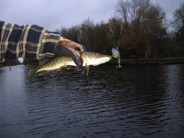 Ralf zijn reactie was: "dat was wel een mooie 60-70 er Rob." Ik bedankte hem voor zijn medeleven en we gingen verder.Na 50 meter was het weer JOOOOO HANGEN!! Jaja zei Ralf ,je zit zeker vast.Maar niks was minder waar.Een klein fel snoekje had mijn Arukushad weer te pakken.Onthaken,foto,terugzetten je kent het wel