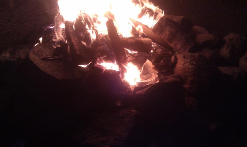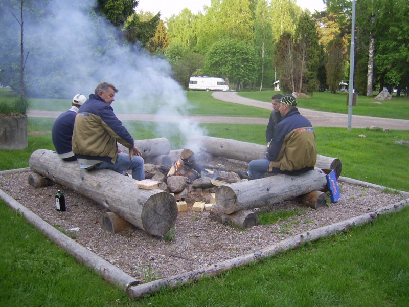 Om 7 uur gegeten en op naar de borrel bij het kampvuur.