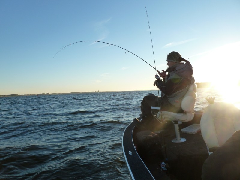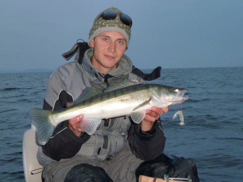 Na 10 min op het water te zijn was het al snel was het raak voor Floris en ving hij een snoekbaarsje op de verticaalhengel met een hawg shad.