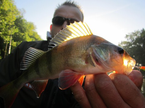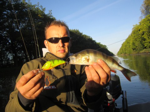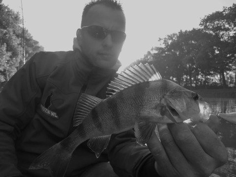 Bij Robin blijven de baarsvangsten uit,ik heb ondertussen weer gewisseld en vis nu met een hornet en een Gomen shad van Spro.Beide leveren vis op.Dan gooit Robin zijn principes ook aan de kant en besluit ook de baars-killers te monteren.