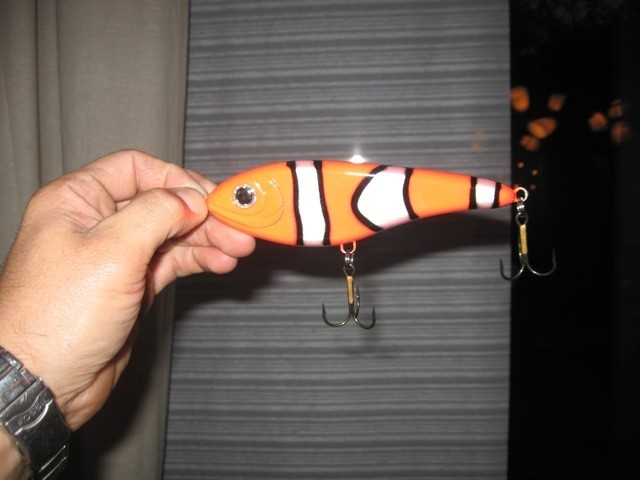Ja ja,ik heb hem weten te vinden.Ze hadden al een film en alles over hem gemaakt maar onze kleine oranje vriend hing gewoon bij van Stekelenburg in het rek.Vandaag heb ik (Rob) de nieuwe jerkbait van strike pro gehaald.De "NEMO"