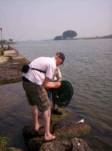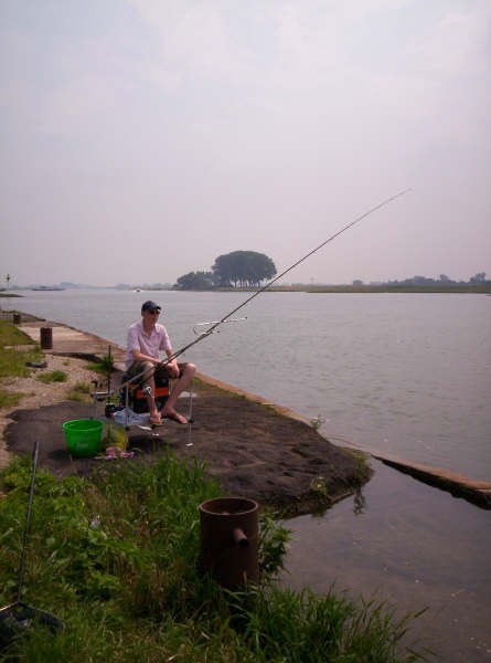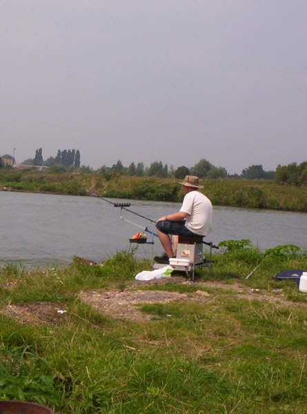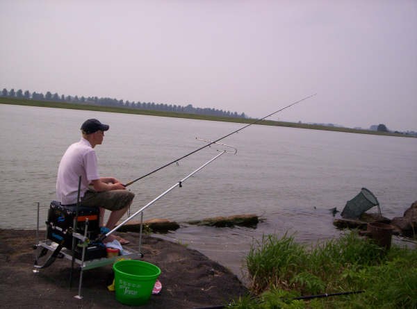 Aangekomen op onze visstek zit er nog iemand, even vragen hoe het gaat.