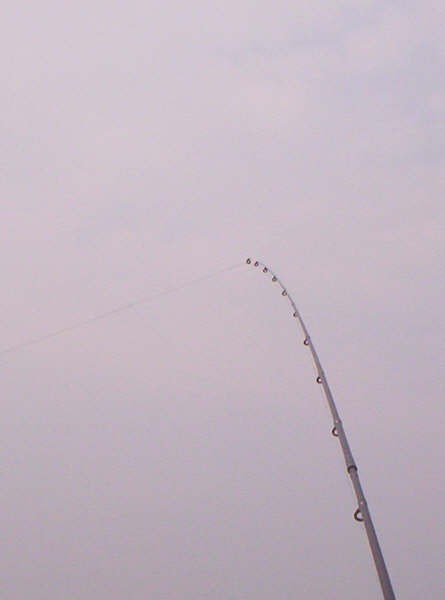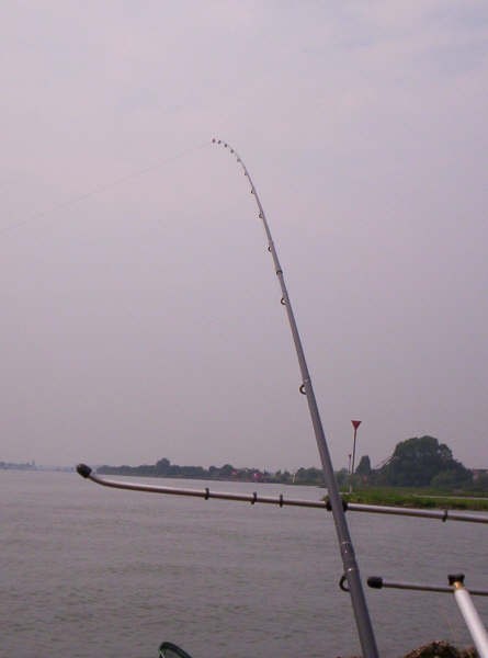 Na een paar proefworpen ga ik ong. 40 meter uit de kant vissen.