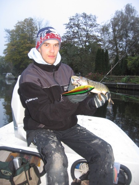 Na een minuut of acht trollen klapte er een kamikaze snoek met grootheidswaanzin op de plug!