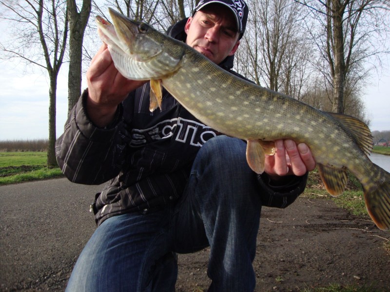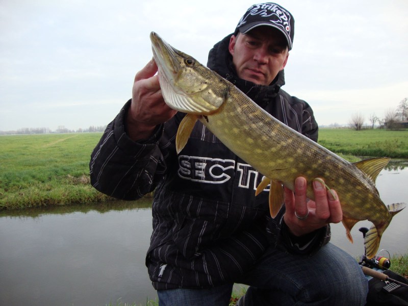 Vroeg opgestaan deze morgen om misschien nu maar weer eens een dikke metersnoek te gaan vangen. Al een tijdje probeer ik deze magische grens weer eens te overschrijden. Mijn pr blijft al zeker een tijdje hangen op 101 cm. Daar wil ik toch maar eens een keer overheen. Na er vorige week op uit te zijn gegaan met Maarten uit Uden die het één en ander wilde leren over het vissen met kunstaas, besluit ik vandaag er alleen op uit te gaan met twee stokken vissend op de bodem met sardines. Het enige wat ik qua leven kan bespeuren deze ochtend is een mooie regenboog en een korte aanbeet. Verder blijft het angstvallig stil langs de oever van de Linge. Na een kneiter van een regenbui besluit ik er na een uur of vier mee te stoppen.De volgende dag terug gekomen met kunstaas. Al lopend vis ik de haven van Leerdam uit. Heel secuur word elke hoek en hotspot afgeworpen. Ook hier blijft het erg stil. Had er zeker meer van verwacht maar goed niks aan te doen. Het zelfde stuk vis ik dan op weg naar mijn auto nog maar eens af maar, dit keer met een jerkbait. Ook hierop krijg ik geen enkele reactie. Wel mooi te zien is dat het er in de haven stikt van de aasvis. Een fuut of vier, vijf duiken steeds boven met bekken vol vis. Misschien een andere keer terugkomen denk ik.Ik besluit dan door te rijden naar een verderop gelegen dorpje midden in de polders. Water genoeg en het ziet er naar uit dat dit het dan moet gaan worden voor deze dag. Na een worp of tien klapt er een mooie dikke tachtiger op mijn swimbait. Prachtige dril en natte voeten verder even snel op de foto manoeuvreren en weer verder vissen. Na een minuut of twintig verder een tik en een imposante kolk achter mijn aas. Net mis. Bij de tweede worp over die bewuste plek is het dan toch raak met als resultaat een mooie poldersnoek van een centimeter of 65. Tijdens de dril stopt er achter mij een auto. Het zijn mijn vrienden (not) van de politie. Ik vraag wel even na het onthaken van de vis of ik hem even op de foto mag zetten voor ik mijn vispas en bijbehorende ellende (want dat is het) moet tonen. "Ja hoor", klinkt een stem van zo een stereotiep politievrouw. Snel met het beest voor de camera die op de zelfontspanner staat en terug zetten. Na de controle overleefd te hebben reis ik verder af naar een voor mij nog niet ontdekt water. Ook daar is het snel weer raak. Ik sluit de dag af met weer een mooie snoek.Kortom weer een geslaagde dag na een keer of wat niks te hebben gevangen."Life after deadbait".Richard Smeenk.