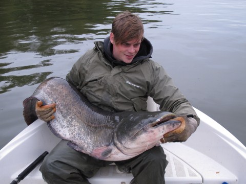 Na een toch wel goede zomer met veel kleine meervallen (tot 1m40) was het nu eindelijk toch eens goed raak. Niels (mijn vaste vismaat) en ik hadden onze hoop, op een dikke vis in de boot, na de zomermaanden nog niet laten varen. Dus gingen we begin november weer samen de Maas op. De temperatuur onder de boot was al aardig gezakt naar 11 graden en in de boot was het ook al niet veel warmer. Vol goede moed begonnen we aan onze drift en na een klein uurtje vissen verdween de dobber van Niels onder het wateroppervlak. BANG, een stevige aanslag en de dril kon beginnen. Al heel snel hadden we door dat dit wel eens de langverwachte Big Brother kon zijn. En jawel, na een stevige dril kon ik de dikke vis van 1m85 in de boot trekken. Na het maken van de nodige foto's en het meten kon de vis weer rustig het Maaswater induiken.