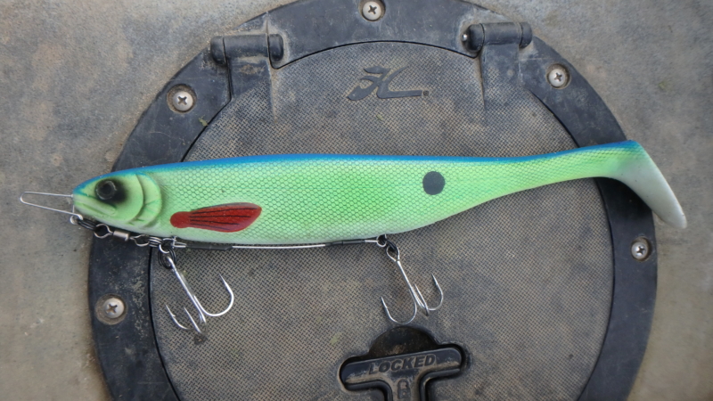 De Hobie kajak kwam afgelopen maand dan ook regelmatig van stal om achter de grote snoeken te gaan jagen. Slow trolling is m’n favoriet spelletje in deze tijd van het jaar om deze roofvis te strikken. Groot kunstaas in de vorm van pluggen maar zekers groot rubber gebruik ik hiervoor. Grote softbaits zoals de Westin shad teez in 27 cm lijkt vrij groot maar valt door het slanke lichaam erg goed mee in gewicht.