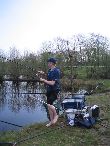 Eindelijk kan ik (Arnoud) weer eens serieus vissen. Ik ben het paasweekeinde weer terug uit Hamburg om op oude "thuis wateren" de hengel uit te gooien. Ik weet me in goed gezelschap van onze eigen wedstrijdvisser Eduard. Dit keer laat ik niets aan het toeval over en vraag Edje het voer te regelen (ik kies de stek) en dit keer ben ik vast beraden de "meester" eens lik op stuk te geven en met eenvoudig reis materiaal een poepje te laten ruiken.