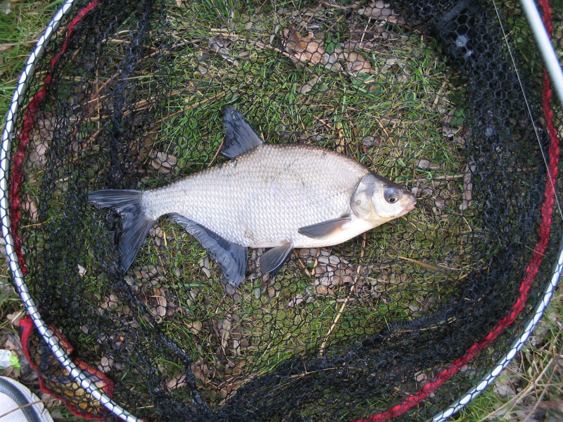Vervolgens volgt ook bij mij een redelijke brasem, minder groot maar zeker welkom kan ik je vertellen. Er volgt ook een exemplaar dat onder het slijm zit (ziek) en een halve staart mist dus die gaat terug en niet in het net.