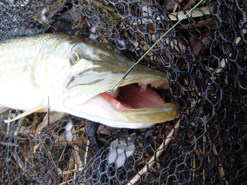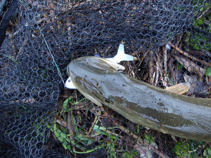 Het water is erg helder en al na een keer of tien gegooid te hebben klapt er voor mijn voeten een mooie snoek op. Al na twee seconden pats.. alles weg.. Helaas.