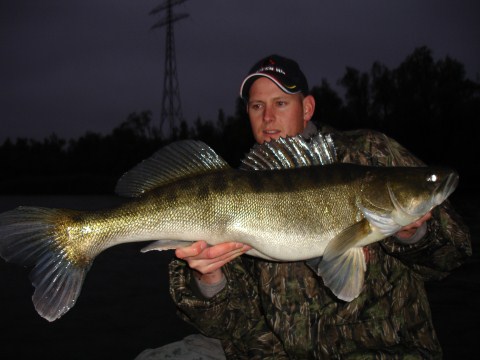 Ik had nog een afspraak staan met vismaat Harm, na lang afspreken dan toch eindelijk een dag gepland.we gaan met zijn boot de rivier op. We waren redelijk vroeg bij de haven waar de boot ligt.Het was nog donker,maar gauw de spullen erin motor starten en gaan! Eénmaal op de stek aangekomen in het donker werd de kunstaas-keuze gemaakt. De stek was een plaat van 1.5 meter water met een vrij steil talud naar 4 meter diep. Ik had een Savage gear Real Eel 40 cm gekregen om te testen.Deze had ik voorzien van een 30 grams Fox lood kop perfect om hem langs het talud al jerkend de diepte in te laten zakken. Na een worp of 10 is mijn Eel bijna onder aan het talud,wanneer er een dikke vis opbeukt.Bam!! Hanguhh!! Een dikke snoekbaars van 84 cm op de paling van 40 cm. Ze zijn er dus niet vies van,foto's maken en terug het water in.