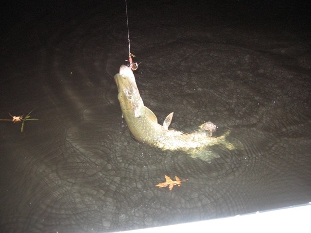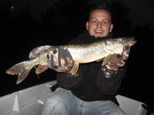 Terwijl ik dit typ ben ik bezig met mijn zool want na 15 meter klapte er een mooie fraaie snoek op de Mepps!! Een klap op de hengel,slip giert en na een paar minuten lag deze mooie dame in de boot.Yes mijn bootje is gedoopt!!Alleen kost het wel een paar schoenen... Heel Bergeijk kon van ons meegenieten en tevreden keerden we huiswaarts.Een mooie snoek van zo'n 65 cm rijker!!