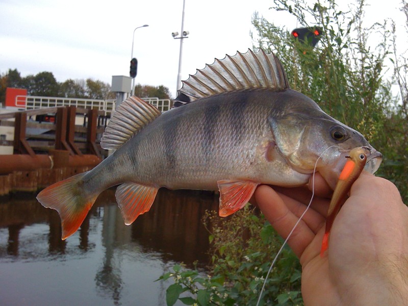 Vanmiddag ben ik (eric) samen met Wilco de sluizen op de zuid willemsvaart weer eens onveilig gaan maken. We viste met de drop shot montage. Op de eerste stek die we uit viste pakte ik 3 mooie 30+ baarzen op m'n nieuwe dropstick van ironclaw.