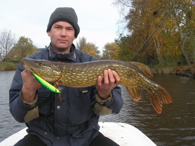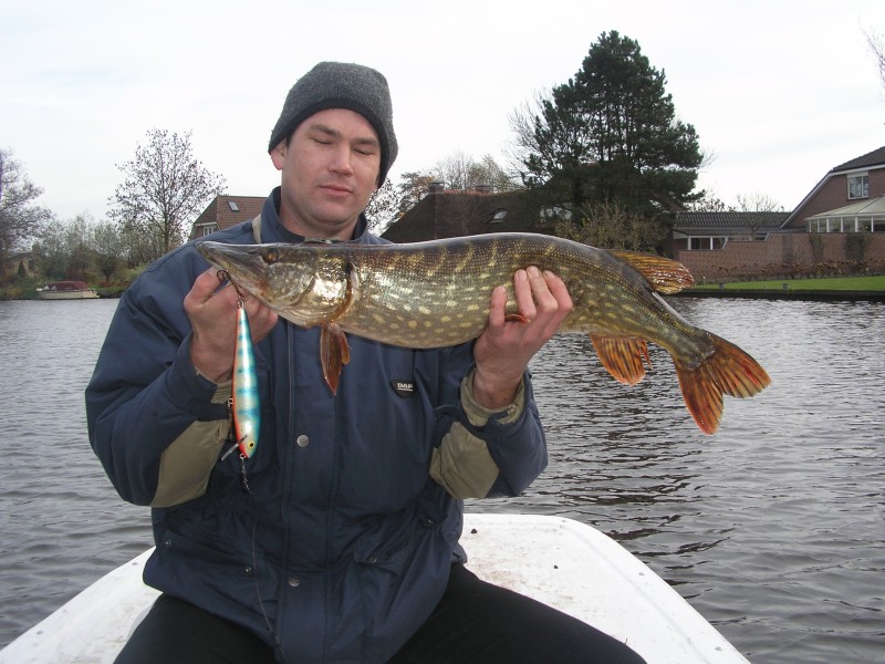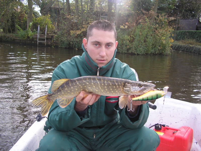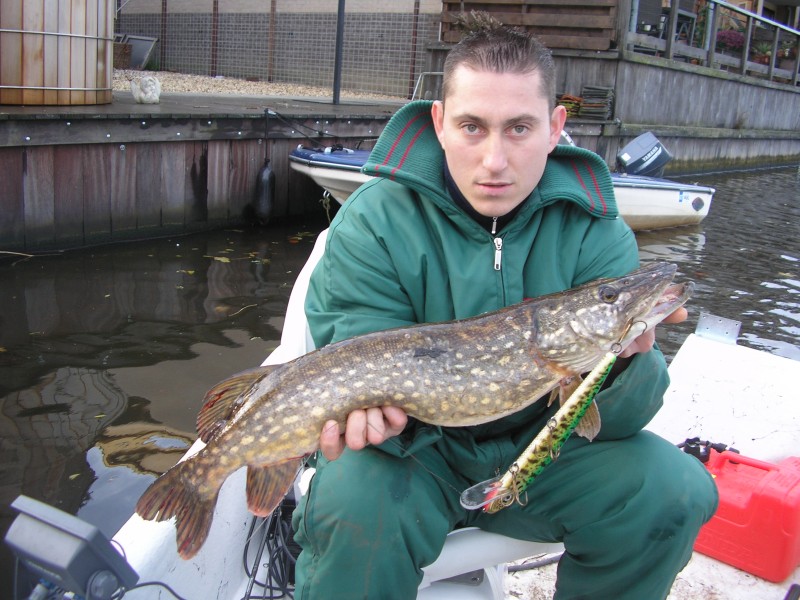 Petrick en ik (eric) zijn weer eens op de Giessen gaan trollen op Snoek. Ik heb voor deze trip 2 nieuwe Grandma's aangeschaft. Eén van 18 en één van 23cm wat voor mij echt grote pluggen zijn. Ik begin te Trollen met de beide Grandma's en Petje met een Salmo en een Rapala. Na driekwartier trollen diende de eerste snoek zich aan op een plek die ons nog nooit in de steek heeft gelaten. De Snoek beet heftig in mijn nieuwe 23cm Grandma die nu meteen is ingewijd. Een stuk verder had petrick een mooie Snoek op de Salmo wihte fish 14cm.
