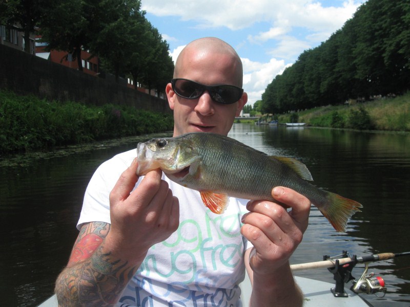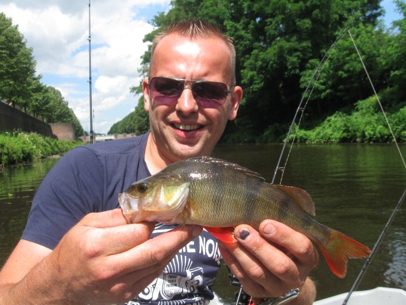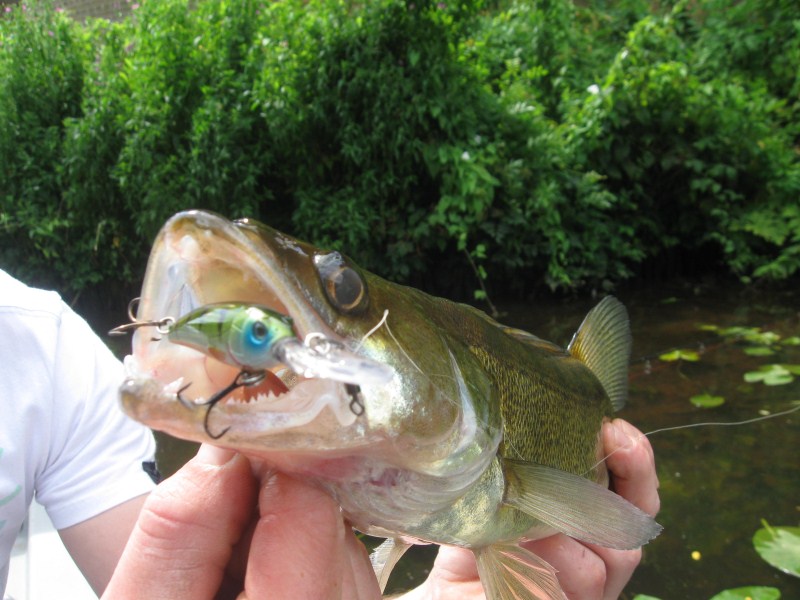 De mercury wordt weer gestart en de pluggen gaan weer te water.Op een binnenwater weet Rob wéér op de chibi shad een vangst te noteren.In dit geval een felle snoekbaars die even met het plugje op de gevoelige plaat gezet wordt.