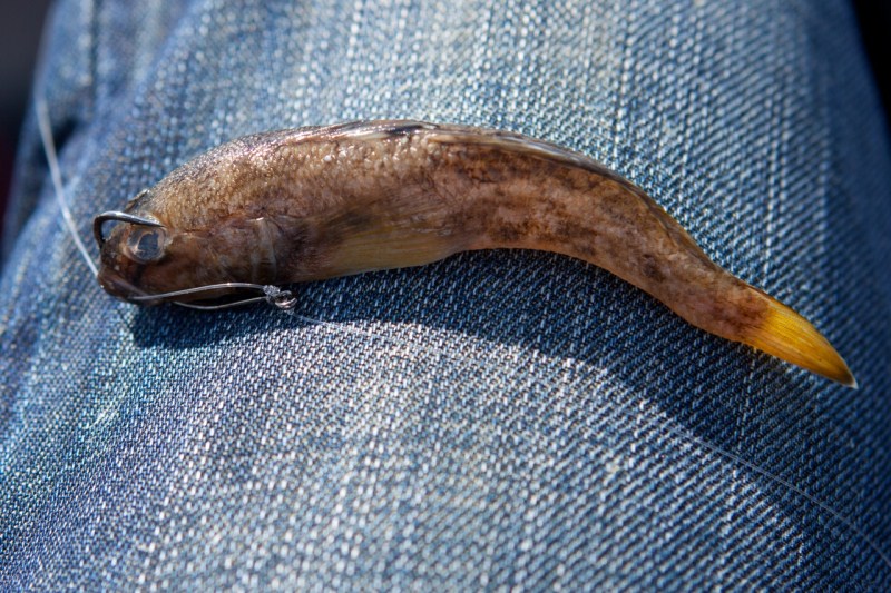 De dag er voor heb ik van een visser wat in gevroren POS mee gekregen, die hij nog thuis in de diepvries had liggen.Dit wilde ik zelf eens proberen, ze waren niet groot een cm of 6 a 8. Perfect om mee te dropshotten.