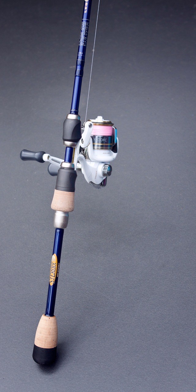 Verder heeft hij een klein kort handvat. Genoeg ruimte voor onder je onderarm om steun te geven met drillen, en afgebouwt als een Amerikaanse hengel.