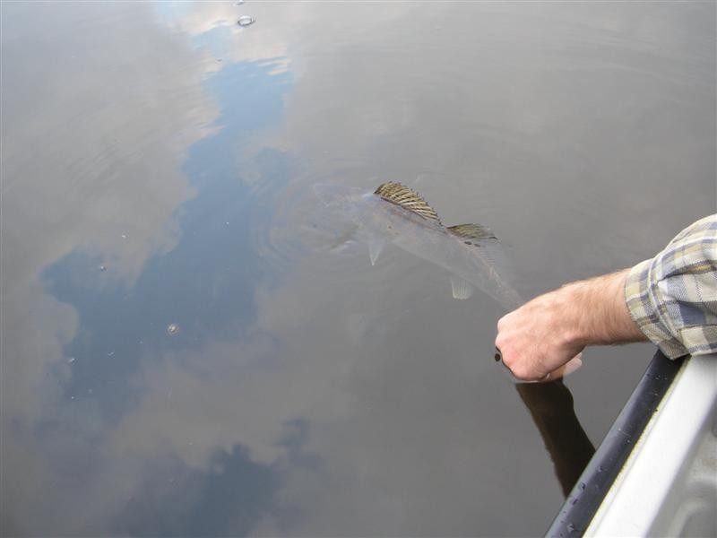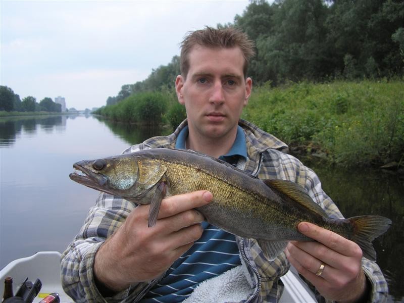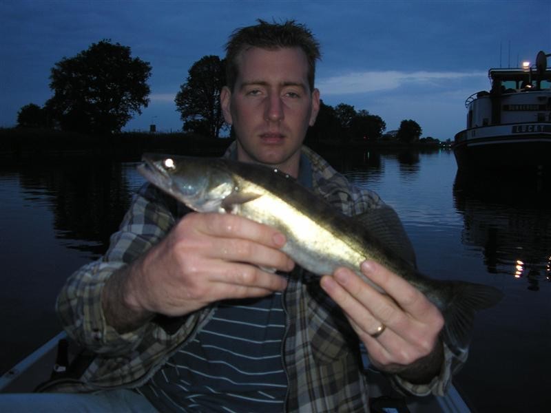 We waren goed Baarzen aan het tikken toen ineens Bas er een mooie Snoekbaars aan kreeg en deze ook wist te landen. De boot lag even stil want Bas was zijn vis terug aan het zetten dus wierp ik een paar keer uit en ook ik ving een Snoekbaars. Later ving Bas er nog een bij en ik ook maar wist deze niet te landen.
