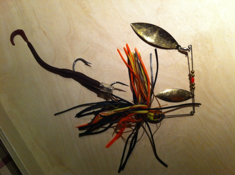 De meeste wateren hier in de steden zijn vaak ondiep. Daarom vis ik vaak met spinnerbaits, jerkbaits of shads.Als ik met spinnerbaits vis gebruik ik altijd een trailer-hook omdat de meeste spinnerbaits een enkele haak hebben. Met een trailer hook heb je een extra haak dus bijna geen missers. Je haakt de trailer hook aan de enkele haak van je spinner. Ik prik er meestal nog een twister aan voor extra attractie.Zelf vind ik de spinnerbaits van het merk Booyah echt de beste. Op onze zweden trip heb ik ermee gevist en ze waren echt top. Ik heb in zweden een vooraadje ingeslagen want in nederland is er niet aan te komen.