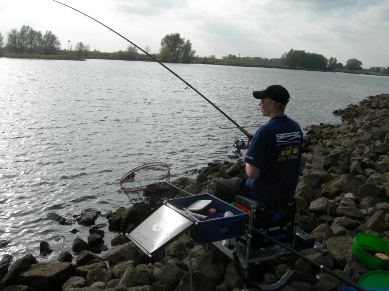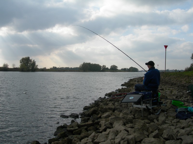 Ik (Arnoud) heb een visdag met Eduard Post gepland staan. Naar aanleiding van een tip van één van mijn klanten heb ik de locatie van een warmwater uitlaat in de Rijn gevonden en dat leek ons wel wat. Ter plaatse gekomen vinden we eerst een mooi watertje afgeschermt van de Rijn waar her en der wat springende vissen te zien zijn. Die stek wordt grondig bekeken en vervolgens kijken we naar de plek waar kolkend water in de Rijn omhoog komt. We besluiten toch de afgesloten waterpartij uit te proberen omdat dat er als een mooi karper watertje uitziet.