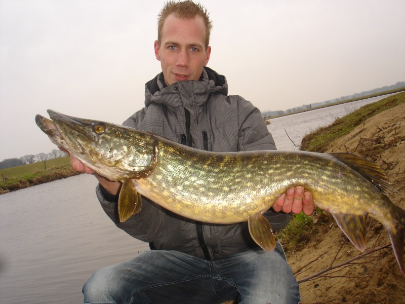 Vorig weekend moest het gaan gebeuren, dacht ik bij mezelf. Ik was voor mijn gevoel alweer een tijdje visloos door het ijs op de wateren en die na weeën van dat ijs in het water maakte het er niet makkelijker op.Die verschrikkelijke ‘passieve snoek’ die niet mee wil werken bij mij de afgelopen tijd, en ik heb van allerlei manieren geprobeerd en dit zal zeker verschillen per water waar je vist.Nou ben ik ook nog niet met de boot weggeweest na de vorst maar meer vanaf de kant werpend in polderachtige wateren met dieptes van een halve meter tot anderhalve meter en een aantal havens uitgekamd in de omgeving.Bij die polder-wateren van mij moet je denken aan smalle kanaaltjes niet breder dan een meter of 6 á 7 en waarvan ik weet dat die propvol zit met snoeken van 40 cm en enkele tot over een meter, maar waar je leuke snoeken vangt met een gemiddelde van 50 tot 70 cm en met een lichte hengel heb je dan een mooie sport van zo’n vis op de hengel.Het moest vorige week ook gaan gebeuren voor mij omdat de snoek straks weer de paai ingaat had ik het gevoel, want zodra het water die magishe temperatuur van 7graden aantikt dan laten ze hun kuit schieten en is het gebeurd met de vangsten.Naar mijn inzicht en mijn gevoel laat deze tijd niet lang meer op zich wachten.