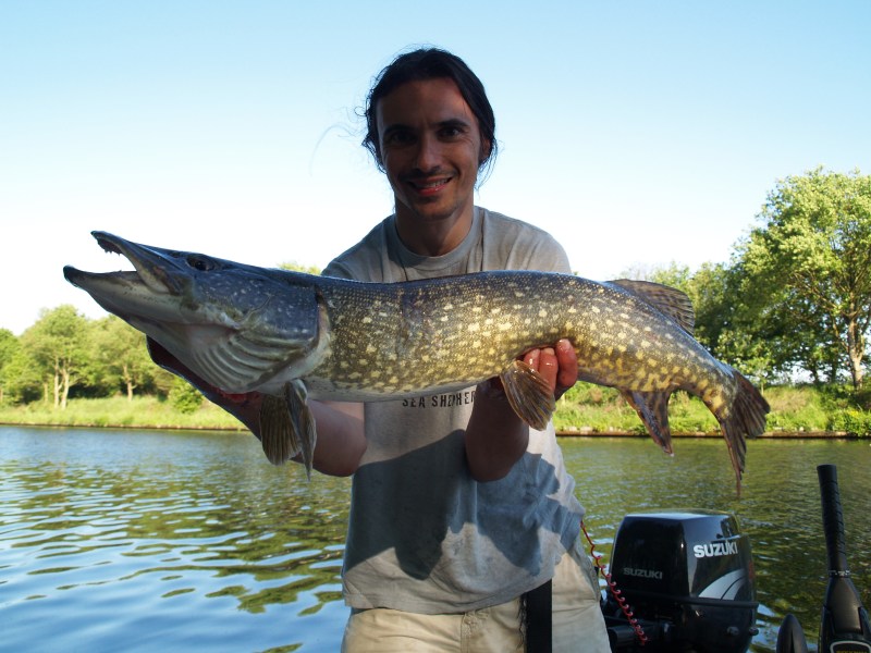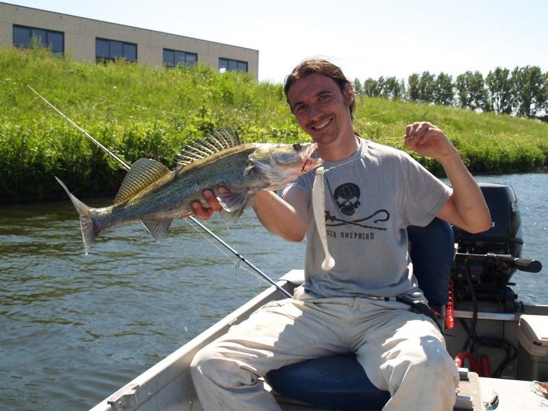 Na vier uurtjes slapen was ik alweer met de boot achter mijn auto aan het rondsnorren voor een jaarlijks ritueel. De opening van het seizoen gaan vissen met Belgische vismaten uit mijn geboortestreek. Het was vanaf een uur of elf stikheet en ik denk dat alle boot- en jetskibezitters van heel Nederland erop uit waren getrokken, maar gelukkig vingen we toch wel wat vissen (met twee boten een tiental snoeken, een stuk of 13 snoekbaarzen en een paar baarsjes). Hierbij foto's van twee van de vissen die ik mocht vangen. Het was opvallend dat de vissen niet echt in de kanten leken te liggen - allicht door de hitte/het licht - maar met diepduikend kunstaas konden we er toch bij. Ingeval jullie je afvragen waarom ik niet al te blij kijk op de eerste foto: die snoek had de dreg kort daarvoor in mijn duim gejaagd & ik was net aan de waterkant "geopereerd" door mijn medevisser Bart... Het was al 25 jaar geleden dat ik nog een dreg in mijn hand kreeg en ik dacht precies hetzelfde deze keer als destijds: "dit is verdorie niet voor herhaling vatbaar!"Mvg Thomas Sintobin