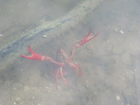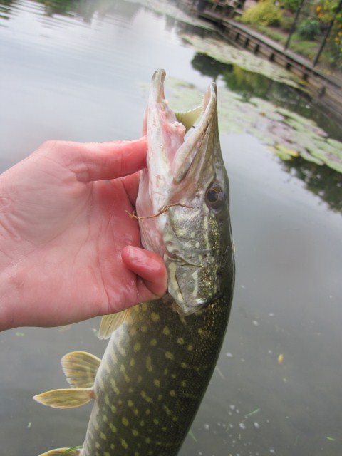 Donderdagavond kreeg ik goed nieuws: er was een vergadering weggevallen op vrijdagmorgen, wat betekende dat ik er een dik uurtje tussenuit kon knijpen. Niet al te ver van mijn kantoor liggen een paar slootjes waar ik al lang eens een kunstaasje wou doortrekken, en dat zou nu dus gaan gebeuren. De eerste sloot waar ik mijn werpkunsten ging vertonen, was werkelijk kristalhelder. Vraag me niet hoe het mogelijk is met al de regen van de voorafgaande dagen, maar ik kon zelfs de nerven van de blaadjes op de bodem zien... In geen velden of wegen viel ook maar één vis te bespeuren en dus hield ik het daar heel snel voor bekeken. Ik weet ook wel dat snoeken zich uitstekend kunnen verbergen, zelfs in helder water, maar het lege-aquarium-gevoel overmeesterde me net iets te krachtig. Twee straten verder was het water al een heel stuk minder exhibitionistisch van aard, en ook zag ik nu her en der lelies en plukjes wier en riet staan. 'Als ze hier niet zwemmen, zwemmen ze nergens' dacht ik - en binnen de vijf worpen was het inderdaad raak. Een klein maar mooi snoekje had zich aan mijn swimbait vergrepen - en wie het kleine niet eert.... Een kwartiertje later kreeg ik weer een harde tik, maar die bleef niet hangen, helaas. En toen was het alweer tijd om richting kantoor te snellen... Een knalrode kreeft bleek mij uit te zwaaien! Of deze stadssloten snoekrijk zijn of niet, ik zou het niet durven zeggen - maar er zwemmen er minstens twee. Ik probeer het binnenkort nog maar eens - het is in elk geval een mooie manier op pauzes zinvol te besteden! Tight lines, iedereen...