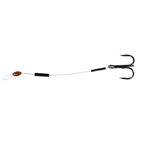 Deze stingers zijn gemaakt van nylon. Te gebruiken als stinger bij het verticalen of diagonalen. Voorzien van goede scherpe V point treble hook. In haakmaat nummer 8. Verkrijgbaar in 4,5 en 6 cm lengte. Door het stoppertje op de bevestigings-lus is hij goed vast te zetten maar ook weer makkelijk te wisselen. Deze stinger is uitermate geschikt als tweede haak bij het vissen op baars en snoekbaars.