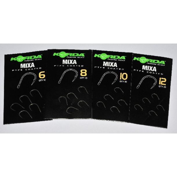 De eerste haak die speciaal ontwikkeld is voor het oppervlakte vissen. Ontworpen om zelfs de meest voorzichtige karper te kunnen haken. Dank zij de korte steel, wijde bocht en de 5 graden staande offset haakpunt is deze haak `Made For The Job´. Wat echter nog belangrijker is, is de scherpte van de punt. Die is chirurgisch scherp, en daardoor zeer snel prikkend. Deze haak beviel onze testvissers zo goed, dat ze besloten om hem ook voor ander montages te gebruiken. Korda´s Ali Hamadi vertelt: “ Ondanks dat ze speciaal voor het oppervlakte vissen zijn ontwikkeld, bied deze haak dankzij het speciale design uitstekende mogelijkheden voor de inzet in andere situaties. Buiten het vangen van zeer veel karpers, waren deze haken, in de kleinere maten, ook uitstekend geschikt voor het vangen van grote kopvoorn en barbelen”. De Mixa Haak is verkrijgbaar mét en zonder weerhaak in de maten 6,8,10 & 14