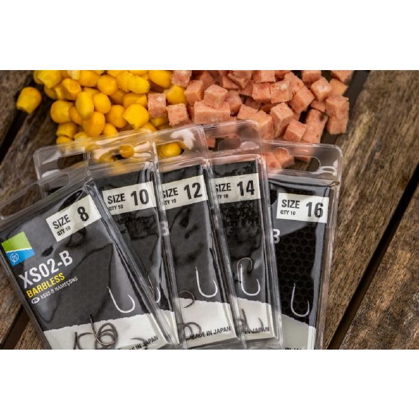 De Preston XS02-B Hooks Size 8 zijn de perfecte keuze voor witvissers die op zoek zijn naar sterke, betrouwbare en scherp ontworpen haken. Ontwikkeld door Preston Innovations, bieden deze hoogwaardige haken de ideale balans tussen kracht en finesse. Met een verpakking van 10 haken ben je verzekerd van een betrouwbare voorraad voor elke vistrip. De Preston XS02-B Hooks zijn ontworpen met de behoeften van witvissers in gedachten. Of je nu vist op voorn, brasem of andere witvissoorten, deze haken bieden de perfecte grip en presentatie voor een breed scala aan aas. Dankzij hun scherpe punt en duurzame constructie verhogen ze je kans op een succesvolle vangst aanzienlijk. Deze haken zijn gemaakt van hoogwaardig staal, wat zorgt voor uitzonderlijke sterkte en weerstand tegen kromtrekken, zelfs bij het landen van grotere vissen. De XS02-B heeft een perfecte haakbocht die de kans op losraken van de vis minimaliseert, terwijl het weerhaakontwerp zorgt voor een veilige houvast. Bestel vandaag nog de Preston XS02-B Hooks Size 8 (10 stuks) en maak je witvisuitrusting compleet!