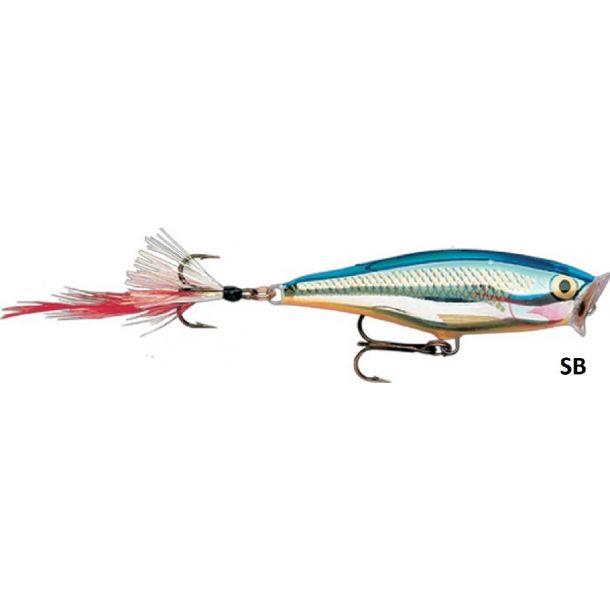 De Rapala Skitter Pop is een luidruchtige popper. De Rapala Skitter pop is gemaakt uit een balsahouten lichaam, hierdoor blijft de popper erg goed drijven. Dit kwaliteits kunstaasje kan gevist worden met korte rukjes, hierdoor zal door de vorm van de lip, de plug een ploppend geluid maken. Voor veel roofvissen, zoals de snoek is dit een echte trigger. Het plugje is voorzien van sterke en scherpe VMC dreggen, voor extra aantrekkingskracht is er op het achterste dregje een paar veren op gebonden.